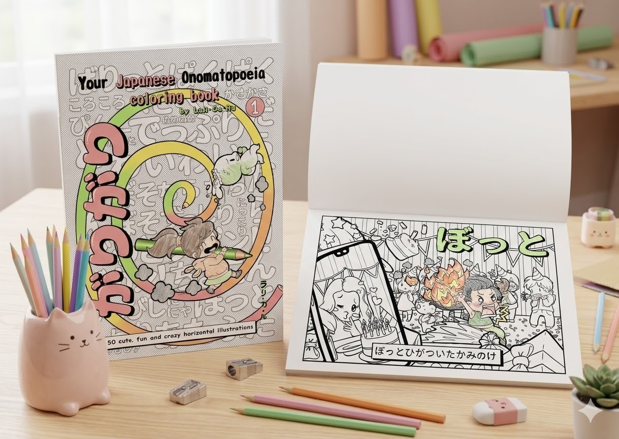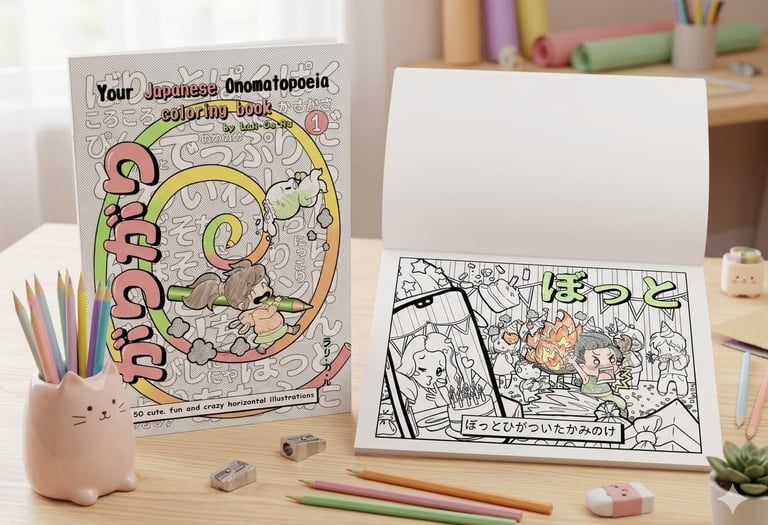 Bring Japanese sounds to life! Grab your favorite colors, relax, and learn kawaii onomatopoeia with every page you color. Warning: Highly addictive!