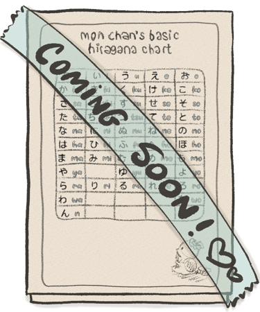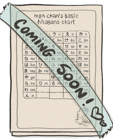 Your first step to reading Japanese! Download this handy, kawaii cheat sheet with all 46 basic characters. Print it out, hang it by your desk, and start studying with Mon Chan.